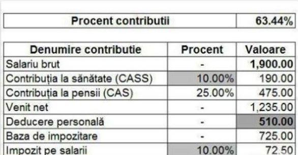 vizitati articolul complet aici : https://energie-electrica.info/2019/01/11/salarii-mai-mari-pentru-electricieni-instalatori-constructori-proiectanti-arhitecti-oug-nr-114-2018/ Salariul minim pe economie brut in 2020 este 2.230 lei, crescut la inceputul acestui de la 2.080 lei. De la 1 ianuarie 2018, românia are cea mai mare creştere procentuală, de 31%, a salariului minim brut pe economie din europa centrală şi de est. Salariul net reprezintă diferența dintre salariul brut și cheltuielile deductibile (contribuții obligatorii și cheltuieli profesionale acordate numai la locul unde se află funcția de bază a salariatului).