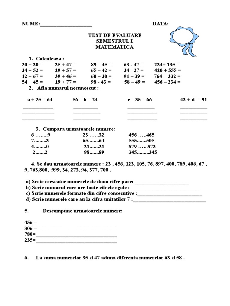 Teste Clasa 2 Matematica
