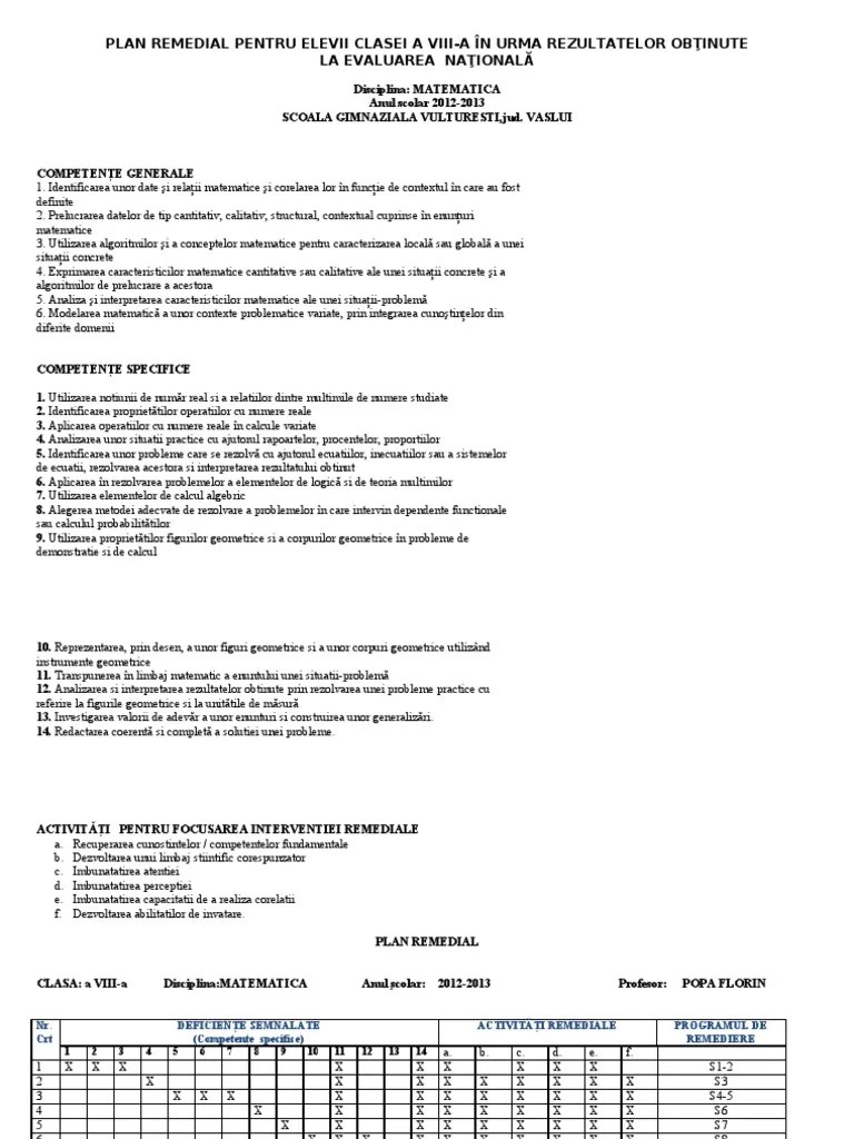 Plan Remedial Matematica Gimnaziu / Raport De AnalizÄ Semestrul I Ppt DescarcÄ. Financial planning means putting your incomes and expenses on a scale to achieve monetary equilibrium or upward mobility on your income levels. Plan remedial matematica gimnaziu · probleme matematica clasa 2 cu plan . În cazul învăţământului "remedial" este de preferat să alegeţi a doua. Catedra/comisia metodică matematică, informatică și tehnologii. De examen elevilor i prinilor.